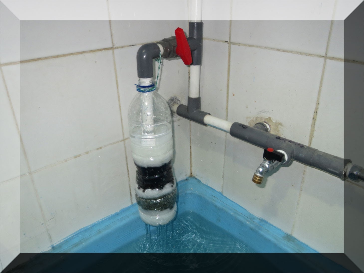 Berdasarkan percobaan pembuatan filter air sederhana dan murah, bahwa air sungai atau air selokan yang bau, berjamur, berlumut, keruh, dan kotor tersebut dapat dipergunakan kembali setelah dilakukan penyaringan. Air dialirkan ke sebuah pipa yang telah diisi kapas ikan, pasir, karbon aktif dan ziolit. Air kotor dialirkan masuk ke dalam pipa ini dan menghasilkan air bersih yang tidak berbau. Air bersih ini kemudian ditampung ke botol air mineral bekas dan hasilnya air tetap jernih, tidak berlumut dan tidak berbau.